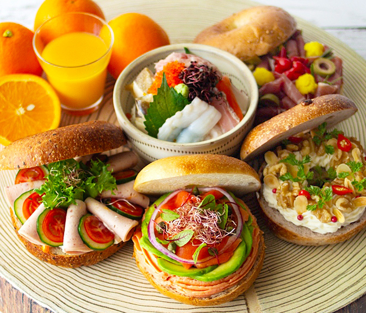 저희가 자부심을 갖고 추천하는 메뉴는, 고소하게 구운 베이글에 햄, 연어, 신선한 채소를 듬뿍 넣은 특제 베이글 샌드위치입니다.